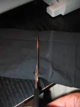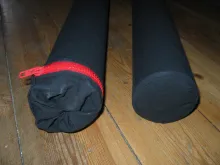 Apart from the rods you need some fabric. I used some heavy weight black Cordura type fabric that I already had. You want something that can take some wear and tear, but also something that gives a little. Not elastic as such, but with enough stretch to be able to slide on and off the tube after it has been sewn as you see in the pictures below.