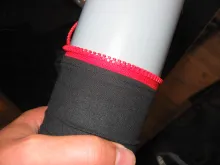 4. Pull the fabric tube back onto the pipe after putting in a foam bottom plug.