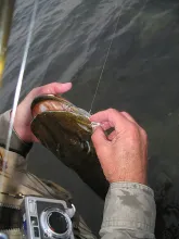 When using a streamer he sometimes felt a that he for a second lost contact with the fly or that the line lost weight. Then, the tippet came up with out a fly at the end.