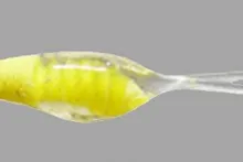 Cast, mend the hopper upstream a bit and watch it closely. Any bobbing indicates a nibble, and if it dives, you set the hook. But don't be surprised to see obvious splashy attacks on the hopper itself!