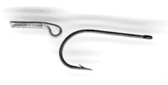 These are all fine techniques that work well. But something urged me to try something different. We've all seen flies that use two hooks, often linked by a piece of monofilament. I tied a few of this type, but I'm not very fond of these flies. First of all I don't like two hooks on a fly. The rear one might fail or they may both hook the fish. These flies also get heavy and quite large.