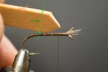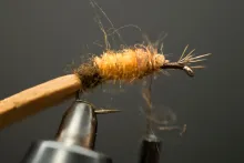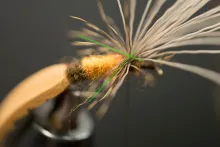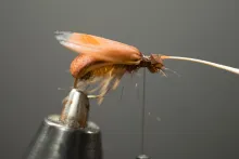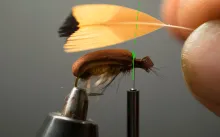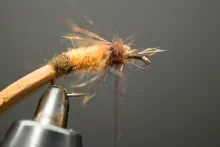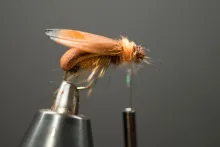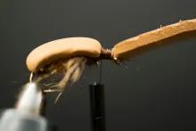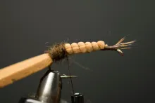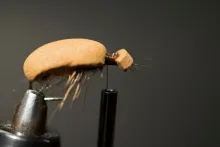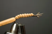 In the colors shown here, the 5 Minute Bug is not far from looking like a small brown cicada with non-transparent wings. Tie it in black and you have a very useful general beetle imitation.