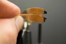 The materials are quite plain, the only less common one being the black tipped feather used for the wing. Still, this is a very easily obtainable feather, coming from the sides of a common or ring neck pheasant, which is a bird so widespread, that you should have no problems obtaining a skin. The common pheasant skin – like the skin from its fancier golden cousin – contains a wealth of useful feathers and is worth getting a hold of anyway.