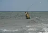 Now here's something which you don't see that often: fishing for roosterfish from the beach. No boat, no guide, no poling. Just a sand buggy, some rods and a couple of crazy guys literally running up and down the Baja Mexico in the pursuit of some grande roosterfish - like in big. |