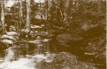 The first fifty yards of this brook consisted of a living wall of brush, raspberry thorns, and thick-stalked marsh plants; a challenging passage that rewarded me when it opened up onto a landscape I had before only read about: a narrow, rocky rivulet bordered by steep, sun-dappled hillsides full of hemlock trees, mountain laurel, waist-high ferns, pale mushrooms, and smooth boulders covered with brown needles and deep green moss. The stream itself was only as wide as a city sidewalk in most spots, a foot or two deep at most, cold, glass clear, and as I as I found when I quenched my thirst from its flow, delicious.
